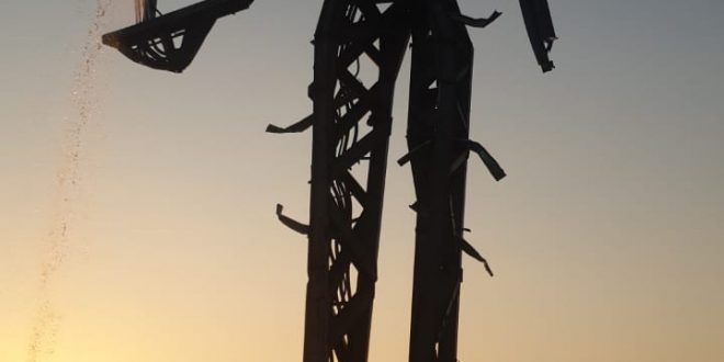 وتم رفع المجسم في قلب المنشآت المدمرة، وهو الاول من نوعه، بارتفاع 25 مترا وبوزن ثلاثين طنا، من قطع الحديد التي جمعت مكوناتها الصلبة من بقايا عنابر المرفأ المدمرة، للتعبير عن استمرارية الحياة والإرادة الصلبة في البقاء. وتم انجازه بمبادرة ومساندة اصحاب الكفاءات والشركات والمؤسسات وألاصدقاء. وتم ذلك في مدة لم تتجاوز 9 اشهر، هي الفترة التي فصلت بين مشروع الفكرة وتجسيدها واقعيا، ليعلو شاهقا تكريما لضحايا الانفجار وشهدائه وللتذكير الدائم بضرورة الوصول الى الحقيقة.