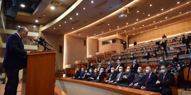 بعد النشيد الوطني وتقديم من المستشار الإعلامي في الوزارة ألبير شمعون، قال الحلبي: “عندما يتعاظم خطر الأزمات، يدعونا الواجب الوطني إلى ابتكار المبادرات، والتعاضد والتعاون في ما بيننا على المستويات كافة، لدرء الخطر الذي يمكن ان ينتج عن الأزمة، وخصوصا إذا كنا نتحدث عن انتشار متكرر لفيروس شرس على البشرية مثل وباء كورونا”.