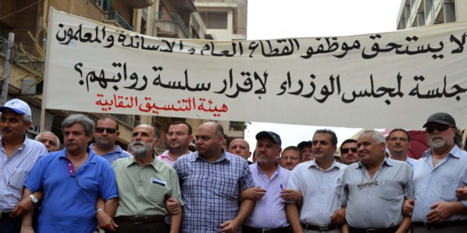 وقررت هيئة التنسيق النقابية أمس تنفيذ اضراب عام غدا وتنظيم تظاهرة تزامناً مع جلسة مجلس الوزراء للمطالبة باقرار السلسلة.