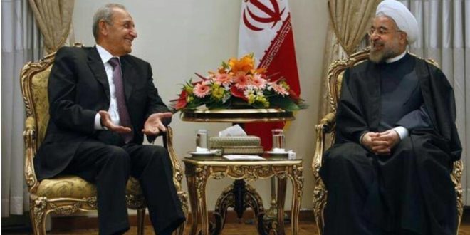 توج رئيس مجلس النواب نبيه بري زيارته لطهران ومشاركته في مؤتمر دعم الشعب الفلسطيني اليوم، بلقاء الرئيس الايراني الشيخ حسن روحاني الذي أشاد بالعلاقات الايرانية – اللبنانية ووصفها بأنها “علاقات اخوة وصداقة”.