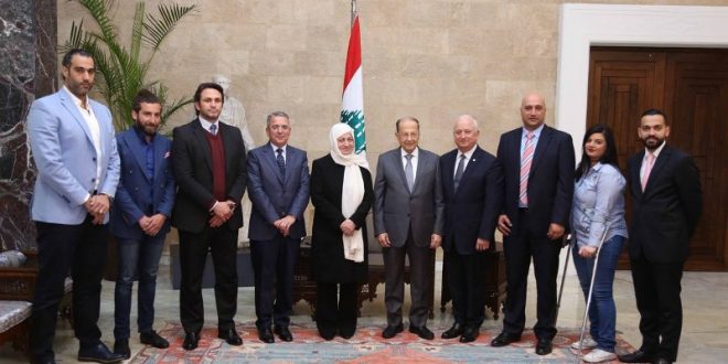 استقبل رئيس الجمهورية العماد ميشال عون في قصر بعبدا، النائب بهية الحريري مع رئيس جمعية صيدا انترناشونال ماراثون ناصر حمود واعضاء الجمعية واطلعوا الرئيس على تفاصيل الماراثون في صيداالمزمع تنظيمه في 23 نيسان المقبل تحت عنوان منركض للتنمية والسلام.