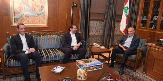 استقبل رئيس مجلس النواب نبيه بري مساء أمس في عين التينة رئيس الحكومة سعد الحريري و مدير مكتبه نادر الحريري بحضور الوزير علي حسن خليل.