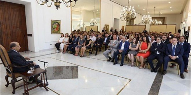 مواقف الرئيس عون جاءت خلال استقباله قبل ظهر اليوم في قصر بعبدا وفدا من الانتشار اللبناني من الولايات المتحدة الاميركية وكندا واوروبا والخليج وافريقيا واميركا الجنوبية والعراق في حضور سفير لبنان المعيّن في الولايات المتحدة الاميركية غابي عيسى. وتحدث باسم الوفد مسؤول قطاع الانتشار في ” التيار الوطني الحر” المهندس سعد حنوش الذي نقل الى رئيس الجمهورية شكر اللبنانيين المنتشرين في العالم على اعطائهم الحق بالتصويت في الانتخابات النيابية متطلعين الى تحقيق المرحلة الثانية وهي تخصيص 6 نواب للانتشار في مجلس النواب اللبناني.