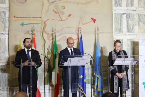 2- عبر المشاركون عن تقديرهم لوزير الخارجية الايطالي ألفانو الذي عقد هذا المؤتمر وافتتحه رئيس الوزراء باولو جنتيلوني ، والأمين العام للأمم المتحدة أنطونيو غوتيريس ورئيس وزراء لبنان سعد الحريري. وشاركت فيه اربعون دولة ومنظمة بما فيهم الاتحاد الاوروبي وجامعة الدول العربية.