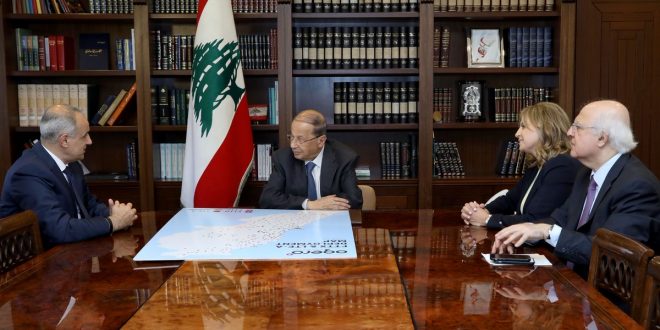 وخلال اللقاء، اكد الرئيس عون ان لبنان مقبل على مرحلة سياسية متقدمة بعد انجاز الاستحقاق الانتخابي وتشكيل حكومة من شأنها ان تعزز الاستقرار السياسي في البلاد، معربا عن امله في ان يتمكن الرئيس المكلّف من ان يضم في الحكومة كل الاطراف الوطنية للمشاركة في مواجهة التحديات المرتقبة على مختلف الاصعدة. وردا على اسئلة الوفد، عرض رئيس الجمهورية لموقف لبنان من التطورات الاقليمية ولاسيما في سوريا، كما تحدث عن الوضع على الحدود اللبنانية الجنوبية والمفاوضات الجارية مع اسرائيل عبر الامم المتحدة، لوقف اعتداءاتها على السيادة اللبنانية برا وبحرا، لاسيما في ما خص بناء الجدار الاسمنتي على طول الحدود قبالة ” الخط الازرق”. واشار الرئيس عون في هذا المجال، الى ان هذه المفاوضات ستستمر للوصول الى النتائج المرجوة، مجددا التأكيد على ان لبنان ملتزم تطبيق القرار 1701، فيما اسرائيل تواصل انتهاكاتها له.