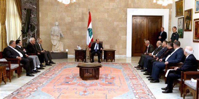 موقف الرئيس عون جاء خلال استقباله أمس نائب بعلبك الهرمل الدكتور علي المقداد مع وفد من نقابة اصحاب المؤسسات والمحلات التجارية في منطقة البقاع برئاسة محمد كنعان عرض له الوضع الامني في بعلبك والاعتداءات التي يتعرض لها المواطنون والتجار من قبل مسلحين يعبثون بالامن من دون ان تتمكن القوى الامنية من توقيفهم.