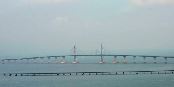 ويعد هذا المشروع الضخم الذي يربط هونغ كونغ بالبر الصيني الثاني من نوعه بعد افتتاح خط سكة حديد للقطارات السريعة الشهر الماضي، وهو جزء من استراتيجية بكين لتشكيل منطقة اقتصادية كبرى.