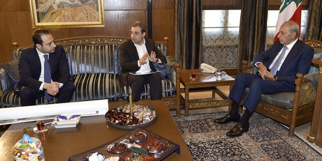 استقبل رئيس مجلس النواب نبيه بري في مقر الرئاسة الثانية في عين التينة، وزير الصناعة وائل ابو فاعور ورئيس المصلحة الوطنية لنهر الليطاني سامي علوية، وجرى عرض للاجراءات المشتركة التي تقوم بها وزارة الصناعة بالتعاون مع المصلحة الوطنية لنهر الليطاني لإزالة التلوث الصناعي على مجرى النهر.