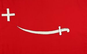 - 1516: اعتمد المعنيون علماً مقسماً جانبياً باللونين الأحمر والأبيض يتوسطه إكليل أخضر.