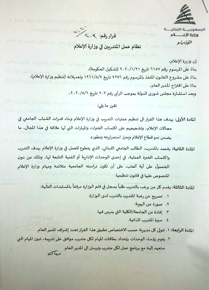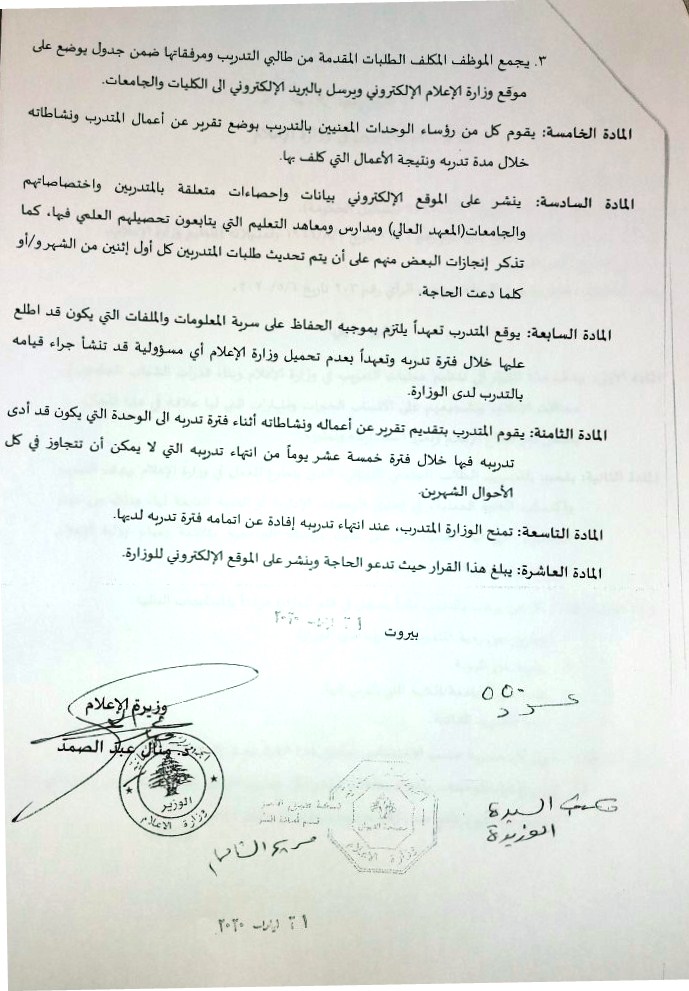 نظام عمل المتدربين في وزارة الاعلام ديسمبر 14, 2020 قرار التدريب اضف تعليق صدر عن وزيرة الاعلام الدكتورة منال عبد الصمد نجد، القرار رقم 203/2020 ينظم عمليات التدريب في وزارة الاعلام. 2020-12-14 Wissam Tarhini شاركها Facebook Twitter Google + Stumbleupon LinkedIn Pinterest