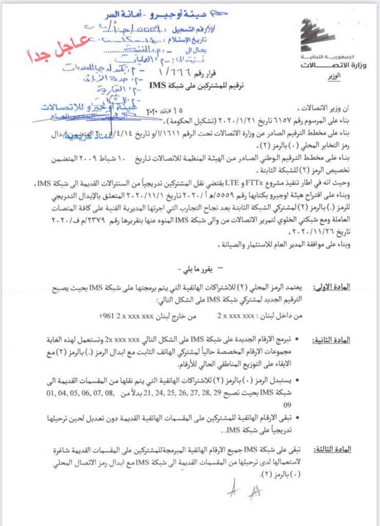 قرار استبدال الرمز (0) بالرمز ٢ للخطوط الأرضية للمشتركين تدريجياً من السنترالات القديمة إلى شبكة IMS لمشتركي الشبكة الثابتة ديسمبر 18, 2020 أخبار اضف تعليق أصدر وزير الاتصالات المهندس طلال حواط قرار رقم ١/٦٦٦ “ترقيم للمشتركين على شبكة IMS” في إطار تنفيذ مشروع FTTx وLTE حيث يقتضي نقل المشتركين تدريجياً من السنترالات القديمة إلى شبكة IMS والإبدال التدريجي للرمز (٠) بالرمز (٢) لمشتركي الشبكة الثابتة. 2020-12-18 edarabic شاركها Facebook Twitter Google + Stumbleupon LinkedIn Pinterest