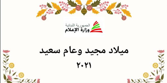 وزارة الاعلام تهنيء اللبنانيين بالاعياد ديسمبر 24, 2020 أخبار مميزة, سياسة, نشاطات اضف تعليق تتقدم وزارة الاعلام بالتهائي بالاعياد المجيدة من جميع اللبنانيين باسمى آيات التبريك، سائلين الله ان يعيده على بلدنا لبنان والعالم بالامان والسلام والازدهار. 2020-12-24 edarabic شاركها Facebook Twitter Google + Stumbleupon LinkedIn Pinterest