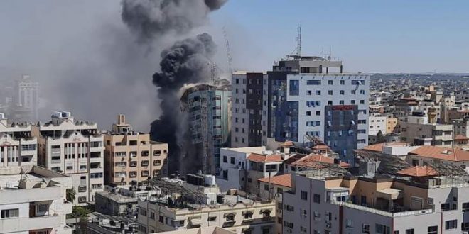 في محاولة منها للتعتيم على المجازر التي ترتكبها قوات العدو الاسرائيل بحق المدنيين في فلسطين المحتلة وقطاع غزة، استهدفت طائرات حربية اسرائيلية “برج الجلاء” الواقع وسط مدينة غزة بعدد من الصواريخ، ما أدى إلى تدميره بشكل كامل، ويضم البرج عدد من المكاتب الصحافية والإعلامية من بينها قناة “الجزيرة”، ووكالة “أسوشيتد برس”، وإذاعة “الأسرى”، وقناة “القدس اليوم”…