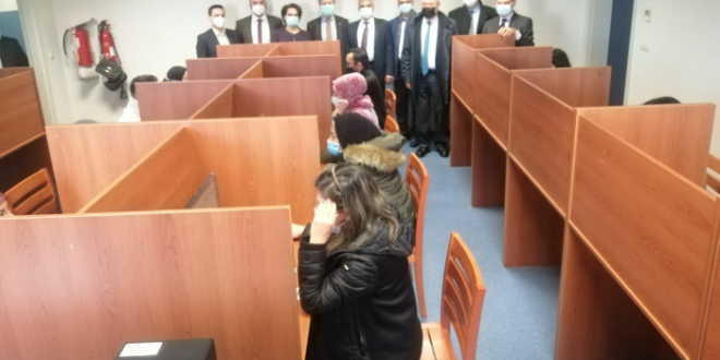 واطلع الحلبي والوفد على الإمتحانات التي تتم عبر شاشة الكومبيوتر، إذ يقرأ الطالب الأسئلة ويجيب على الكمبيوتر المعزول عن الطالب الآخر بحاجز خشبي. وساد الإمتحانات جو من الهدوء التام، لا سيما أن لكل طالب 45 دقيقة من الوقت ليجيب على الأسئلة، ثم تدخل مجموعة أخرى بصورة دورية، مع كل التدابير الصحية من تنظيم التباعد والتعقيم والكمامات وغيرها.