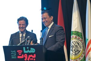 بدأ الحفل بالنشيد الوطني اللبناني الذي اداه طلاب مدرسة تانيا قسيس. كما قدم الحفل الاعلاميان نعمت عازوري اوسي وسامي كليب، ثم القى الامين العام المساعد لجامعة الدول العربية السفير أحمد رشيد الخطابي كلمة جاء فيها: “من دواعي الشرف الكبير الحضور هذا المساء لتمثيل جامعة الدول العربية في حفل بيروت عاصمة الإعلام العربي 2023 تحت شعار “هنا بيروت” تلك المدينة المتوسطة الكونية الخلابة التي تحمل عبق التاريخ والحضارة الانسانية، والتي برهنت في كل الظروف أنها رمزا للشموخ و التحدي عصية على الصعاب والنوائب”.