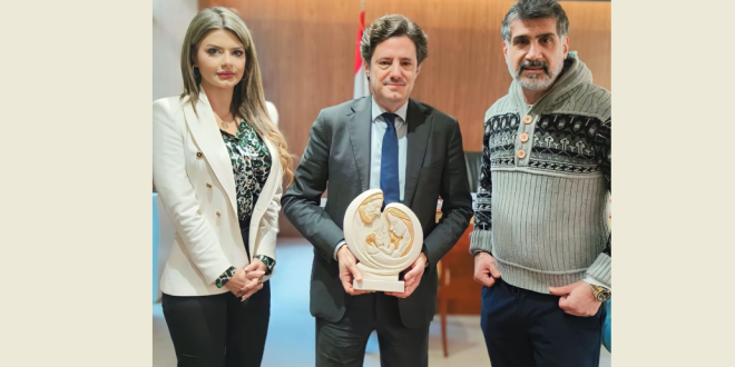 استقبل وزير الاعلام في حكومة تصريف الاعمال زياد المكاري في مكتبه في الوزارة، مدير البرامج لمحطة Mariam TV الإعلامي جورج معلولي والإعلامية ماري العلم حبشي، اللذين قدما له منحوتة تجسد العائلة المقدسة عربون شكر على تكريمه المحطة وتقديرا لدوره الحيوي.