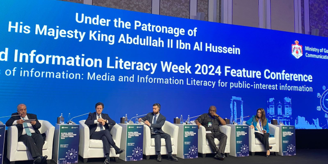 شارك وزير الإعلام في حكومة تصريف الاعمال زياد المكاري امس في العاصمة الاردنية عمّان، في المؤتمر الرئيسي للاسبوع العالمي للدراية الاعلامية والمعلوماتية لعام ٢.٢٤ ، الذي تنظمه منظمة اليونسكو بالتعاون مع المملكة الاردنية الهاشمية ممثلةً بالاميرة ريم بنت علي، وحضور المدير العام المساعد للاتصالات والمعلومات في مكتب اليونسكو باريس توفيق الجلاصي، ومديرة مكتب اليونسكو الاقليمي في بيروت كوستانزا فارينا.