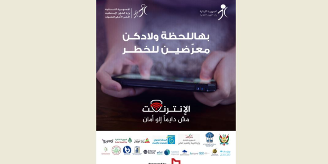 أطلقت وزارة الشؤون الاجتماعية، عبر البرنامج الوطني لحماية الأسرة والطفولة، والمجلس الأعلى للطفولة، أمس حملةً إعلامية إعلانية، حملت عنوان: “بها اللحظة ولادكن معرضين للخطر، الأنترنت مش دايما إلو أمان”، وذلك لمناسبة اليوم العالمي لحماية الأطفال من سوء استخدام الأنترنت، والذي يصادف في 11 شباط من كل عام،