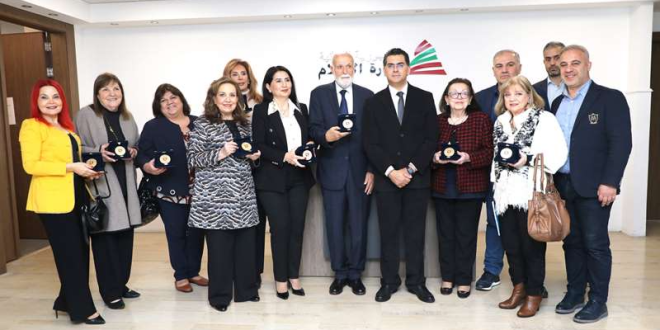 كرم وزير الاعلام المحامي بول مرقص، في مكتبه في وزارة الإعلام، مجموعة من الاعلاميين، الذين حلوا ضيوفا على برنامج “ألبوم الأصالة” مع الزميل روبير فرنجية عبر “تلفزيون لبنان”، وقدم دروعا تذكارية للإعلاميات: ريموند إنغولوبولو، سمر ابو زيد فرحات، وفاء العود صعب، ميمي فرح، سمر الزين التي تسلم الدرع عنها نقيب الممثلين نعمة بدوي لوجودها خارج لبنان، رولا ابو زيد، لمى لاوند، جوزيان جان كلود بولس وهيفاء الجارودي.