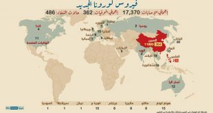 يواصل فيروس كورونا الجديد انتشاره عالميا، إذ سجلت إصابات بالوباء في ما لا يقل عن 15 دولة، بعد ظهوره بداية في الصين وارتفع عدد الوفيات بالفيروس إلى 170 في الصين، وذلك بعد وفاة 37 شخصا آخرين متأثرين بإصابتهم بالفيروس القاتل في مقاطعة هوبي الصينية. كما ارتفع عدد الإصابات المؤكدة بفيروس ...