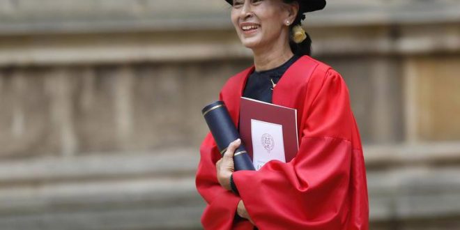 Burma’s de facto leader, who completed her undergraduate degree at Oxford University, was granted the honour in 1997 for her “struggle for democracy”.