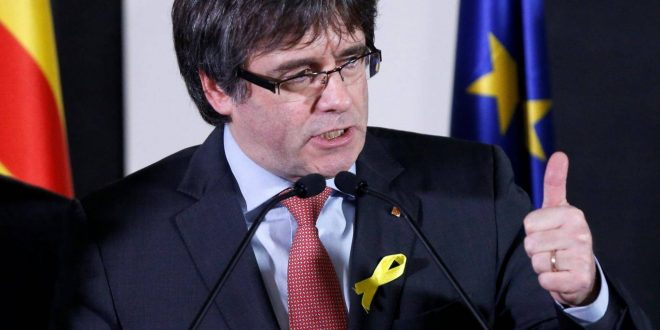 “The Spanish state has been defeated,” Mr Puigdemont said, without saying if he would return to Spain. “Mariano Rajoy has received a slap in the face from Catalonia.”