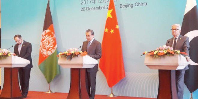 Foreign Minister Wang Yi of China, Foreign Minister Salahuddin Rabbani of Afghanistan and Pakistani Foreign Minister Khawaja Asif led delegations from their respective countries.