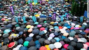Thousands of people have taken to the streets of Hong Kong in a new wave of pro-democracy protests, but they were met with teargas fired by police after some demonstrators hurled bricks and smoke bombs.
