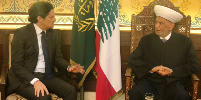 Grand Mufti of the Lebanese Republic, Sheikh Abdel Latif Darian, on Tuesday welcomed at Dar al-Fatwa Caretaker Minister of Information, Ziad Makary, who called on all political parties to “embrace Frangieh’s outstretched hand and cooperate in order to salvage Lebanon out of the current crisis.”