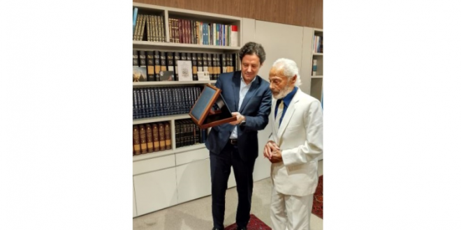 As part of the “Al-Asalah Album” program has already aired on Tele Liban, Caretaker Minister of Information, Ziad Makary, honored artist Youssef Fakhri and presented him with an honorary shield in appreciation of his contributions and dedication.