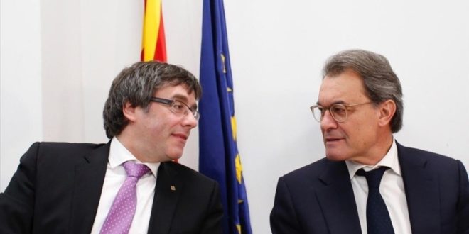 GRA062 BARCELONA 09 01 2017 - El presidente de la Generalitat Carles Puigdemont y el expresidente catalan y presidente del PDeCAT Artur Mas d durante la reunion de la direccion de Partit Democrata Europeu Catala PDeCAT que se ha celebrado hoy en Barcelona tras las fiestas navidenas EFE Alejandro Garcia