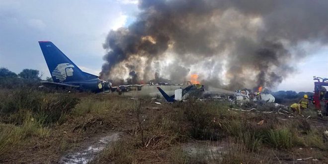 El Embraer 190 de Aeroméxico (vuelo 2431) cayó instantes después del despegue del aeropuerto de la ciudad de Durango, con 97 pasajeros y cuatro tripulantes a bordo; se dirigía a la Ciudad de México