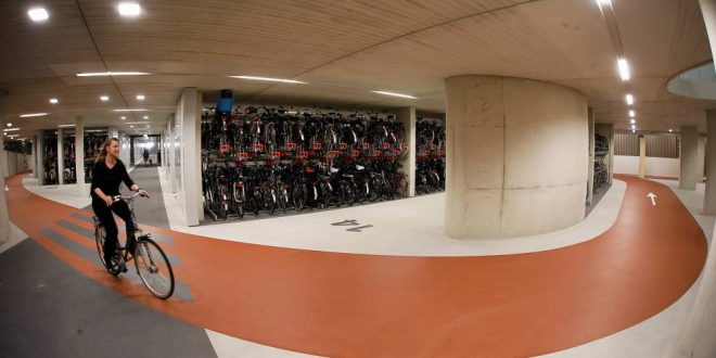 El Ayuntamiento de Utrecht ha abierto ya uno para 12.500 bicicletas, el mayor del mundo de su clase, bajo la plaza de la estación central. De tres pisos, se puede acceder desde la calle y recorrerlo pedaleando hasta encontrar un hueco libre. Cuenta con un túnel que conecta con el vestíbulo y los andenes del tren. De nuevo, el primer día es gratis y se puede pagar con la tarjeta general de transporte (OV-chipkaart, en neerlandés) válida en todos los servicios públicos: tren autobús y tranvía. Tiene también 700 bicis de alquiler y no cierra.