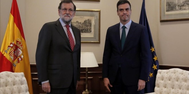 Sánchez en su ‘tu a tú’ telefónico con Rajoy avisó de que no puede esperar la complicidad de los socialistas. Ni tan siquiera ahora, después de haber recibido el encargo ‘Real’-. Sí se mostró dispuesto a reunirse “públicamente” o hablar con el candidato designado por el Monarca siempre que se crea oportuno, garantizándole “lealtad y sentido de Estado” en cuestiones como la crisis con Catalunya o la lucha contra el yihadismo, entre otras.