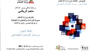 Con el patrocinio de su Excelencia el ministro Melhem Riachi y el Ministerio de Información tienen el gusto y placer de invitarlos a la ceremonia del Tercer Congreso , que se realizará los días jueves 2 y viernes 3 de marzo 2017, a las 9,00 am, en la sala de ... Read More »