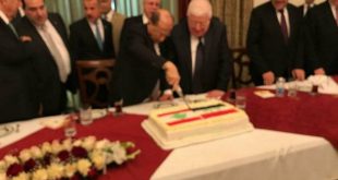 Le président Michel Aoun, en visite officielle en Irak, s’est vu offrir lundi un gâteau pour son 83ème anniversaire par son homologue irakien, Fouad Massoum. Après le déjeuner officiel, le chef d’Etat irakien a surpris son hôte en lui présentant un gros gâteau aux couleurs des drapeaux libanais et irakiens, ... Read More »